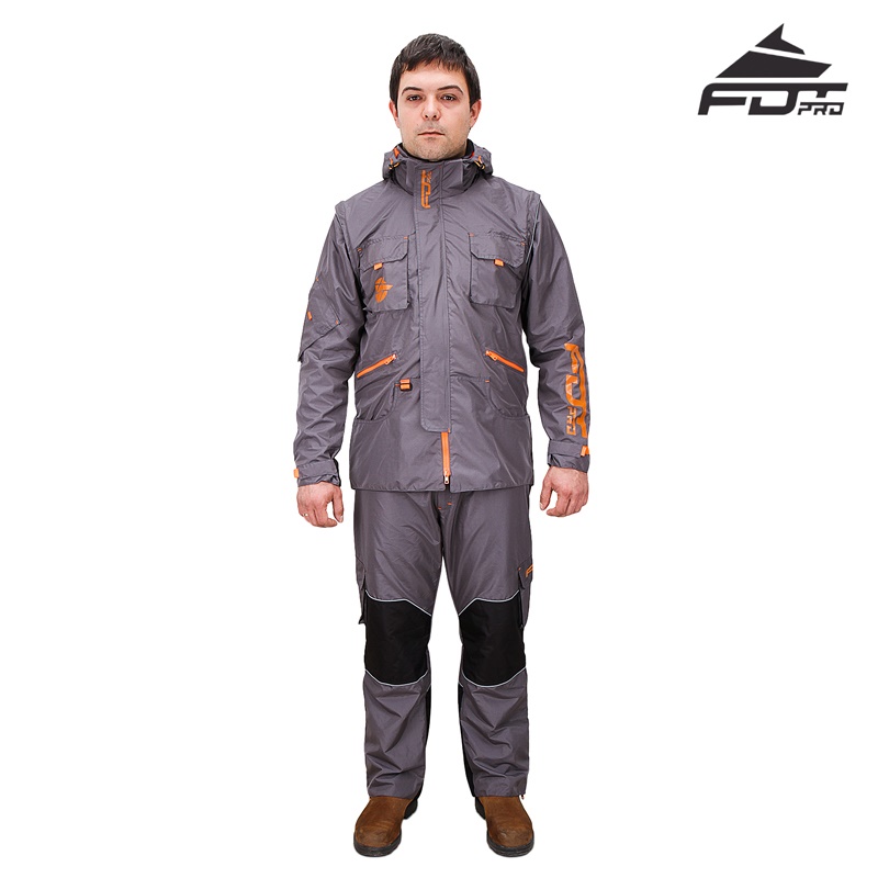 Tuta protettiva unisex di colore grigio dal nostro brand FDT Pro per addestratori di cani